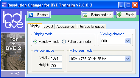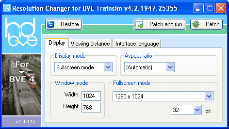 Reschanger enables users to use BVE at higher resolutions than what BVE is originally capable of. For example we can run BVE2 at 1024×768, 1280×1024, 1600×1200 or widescreen resolutions instead of the default 640×480. BVE4 runs at higher resolutions too.